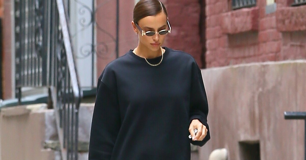 Ирина Шейк продемонстрировала свои идеальные длинные ноги во время выхода в Нью-Йорке. Модель выбрала для прогулки очень смелый аутфит. Она надела ультракороткие шорты, которые полностью открывали не ноги. В контраст коротким шортам модель выбрала синий уютный оверсайз-свитшот от бренда 032с. Особый акцент образу добавили высокие сапоги на каблуке со змеиным принтом.