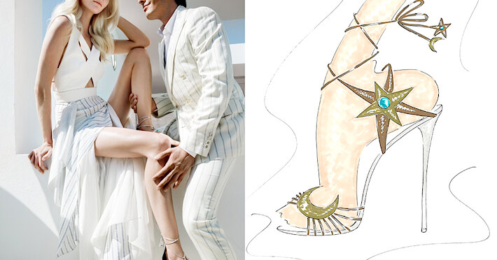 Работая над «мистической» круизной коллекцией, Осорио вдохновлялся и странствиями топ-модели, и ее умением сочетать экзотические вещи с базовыми. Элегантные ботильоны из замши, кружевные сандалии на каблуке со вставками из металла, коралла и бирюзы, «ювелирные» босоножки c астрономическими мотивами и другие вещи, придуманные дизайнером, готовы дополнить большинство дневных и вечерних образов, придавая им курортное звучание. Обзавестись заветной коробкой Aquazzura, которая к выходу этой коллекции предстала усыпанной звездами, можно уже сейчас: коллекция Poppy Delevingne x Aquazzura доступна в бутиках и у официальных ритейлеров бренда с декабря.
