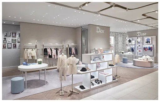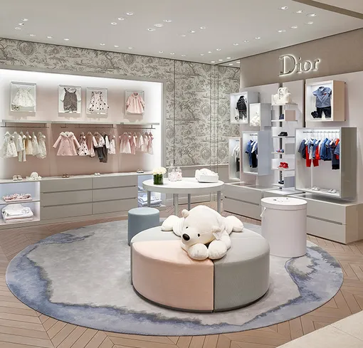 А выше всех — на четвертый этаж — забрался корнер Baby Dior, шагнув за порог которого, вы мгновенно попадете в настоящий сказочный дом: с полом, выложенным белыми мраморными плитами в классическом стиле, коврами из серого зибелина и круглыми креслами из современных французских апартаментов. Здесь ждут и больших, и маленьких модниц - пока первые выбирают одежду и миниатюрные сумки Lady Dior для своих принцесс, вторые будут играть мягкими игрушками: мишками, енотами и зайцами из натурального меха.