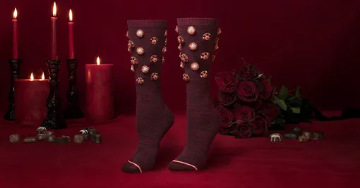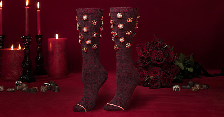 Рианна давно сотрудничает с американской маркой Stance. Каждый сезон певица разрабатывает для бренда мини-коллекцию: то это сексуальные рождественские гольфы, то чулки с бантами, то носки с принтами в китайской стилистике. Но коллекция Рири ко Дню святого Валентина отличается от всех предыдущих. Ее можно назвать по-настоящему роскошной — три пары носков, расшитых камнями. Стоят они ни много ни мало 7763 рубля за пару — и это притом что обычно носки этой марки стоят порядка 1000 рублей.