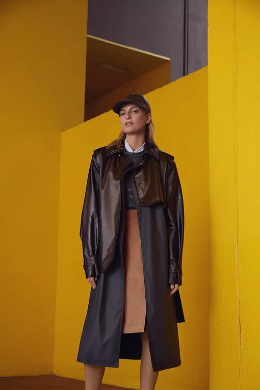 Несмотря на то что коллекция вдохновлена миром мужского портновского искусства, в ней достаточно мягких силуэтов и платьев из летящих тканей. Их, впрочем, можно носить где и когда угодно – все благодаря сдержанной цветовой палитре. В восторге будут и поклонницы тренчей: знаковая для бренда модель теперь есть сразу в нескольких вариациях: в качестве летнего пальто необычного кроя и эффектным сочетанием кожи и нейлона, классики бежевого и нежного персикового оттенка и сексуального мини-платья.
