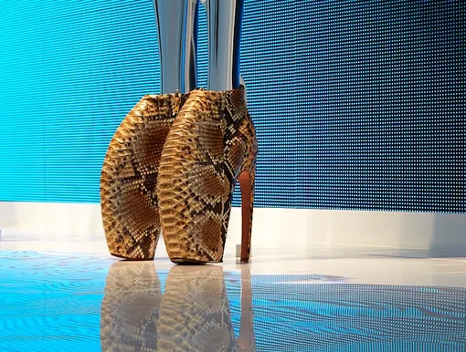 Armadillo появились на свет более пяти лет назад и, кроме как для знаменательного весенне-летнего показа коллекции Plato's Atlantis 2010, не производились. До настоящего момента существовала лишь 21 пара этих туфель, и после презентации они моментально разошлись по музейным и частным коллекциям. Несколько пар можно увидеть на текущей выставке Savage Beauty в лондонском Музее Виктории и Альберта, которая проходит до 2 августа. Однако для состоятельных поклонников Маккуина есть предложение куда более заманчивое: аукционный Дом Christie's через неделю с небольшим представит на своих торгах три пары ботильонов, которые можно заполучить в собственное собрание. У этих лотов нет богатого провенанса: модели Александра Маккуина не ходили в них на показе, ставшем последним перед смертью дизайнера, их не было в коллекциях Леди Гаги или Дафны Гиннесс, они не появлялись на ретроспективах мастера в крупнейших музеях мира. Но тот факт, что дизайнеры Дома Alexander McQueen впервые взялись за воспроизведение сложнейшей конструкции, ценен и сам по себе. Новые модели Armadillo были вручную выполнены в Италии из древесины и кожи питона.
