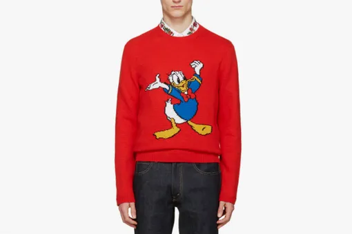 Последним героем итальянского бренда стал небезызвестный мультипликационный персонаж — Дональд Дак. Ассортимент Gucci пополнился новыми изделиями: диснеевская утка украсила собой джемпера и шелковый бомбер.