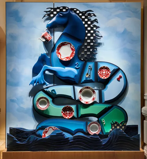 Темой витрин в этом году стала игра, поэтому дизайнеры взяли за основу старинные настольные игры и карты морских путешествий, назвав проект Imaginary Creatures. В декорациях изображены загадочные животные и птицы, которые мешают мореплавателям добраться к сокровищам. Также представлены лабиринты и игральные доски с головоломками, которые дополнены предметами из бутика Hermès.