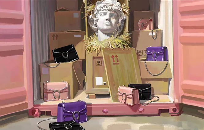 К праздничному сезону Gucci подготовились основательно и выпустили рисованный каталог подарков, который, если издать книгой, сам по себе может стать отдельным пунктом в новогоднем виш-листе. Иллюстрации доверили делать испанскому художнику Игнаси Монреалю, который в свойственной ему манере изобразил сотню вещей: от фирменных футболок, лоферов, сумок и платьев до фарфора, детской одежды и ювелирных аксессуаров. Вдохновение для иллюстраций художник искал в мифах Древнего Рима и Греции и полотнах эпохи Возрождения.