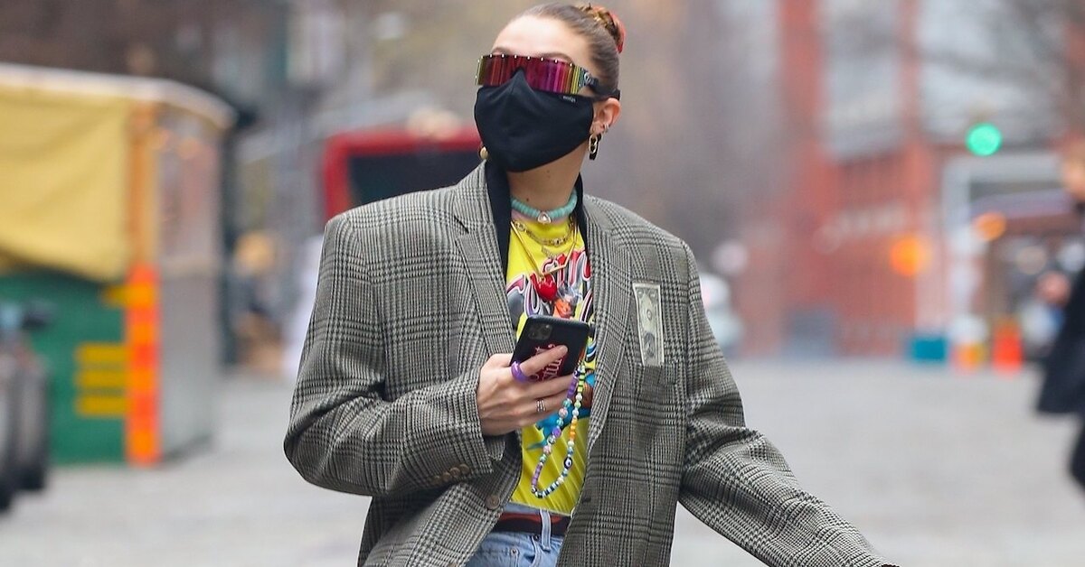 «Папин» жакет, рваные джинсы и пластиковые кольца: Джиджи Хадид собрала все самые горячие тренды в одном образе