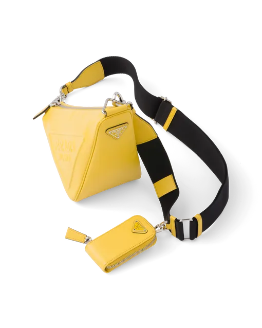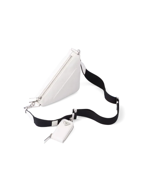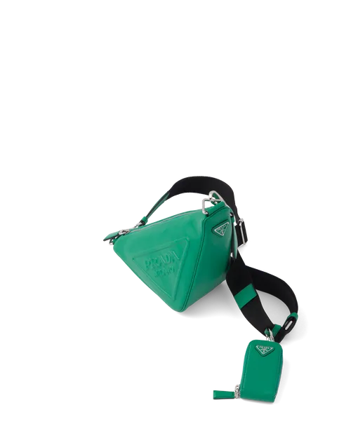 Впервые эта модель была представлена на показе мужской весенне-летней коллекции этого года, но впоследствии была создана и женская версия. Аксессуар представлен в четырех цветах: белом, черном, ярко-желтом и насыщенном зеленом. Линейка включает мужские и женские модели из конопли, рафии, традиционной кожи и кожи Saffiano. Носить сумку Triangle можно как в руках, так и на плече. Она дополнена удобным ремнем из фирменного нейлона и небольшим съемным кошельком, который позволяет удобно хранить личные вещи. Также ее дизайн дополняют объемные детали, выполненные в цвете самой сумки. Женская версия аксессуара уже представлена в бутиках Prada и онлайн, мужская появится в продаже чуть позже.
