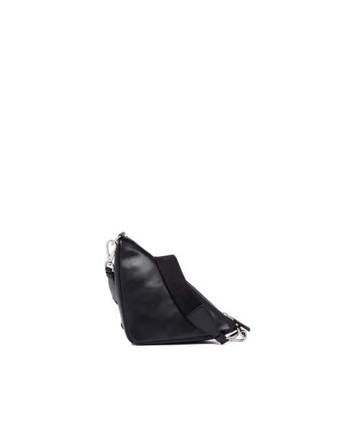 Знаменитый треугольник Prada уже давно стал больше, чем просто логотипом — настоящим воплощением стиля бренда и полноценным элементом его эстетики. Неудивительно, что Миучча Прада и Раф Симонс постоянно переосмысляют его и включают в дизайн новых вещей. На этот раз именно он стал источником вдохновения для целого аксессуара. Новая сумка Prada Triangle — это трехмерное воплощение того самого треугольника, которое можно всегда носить с собой.