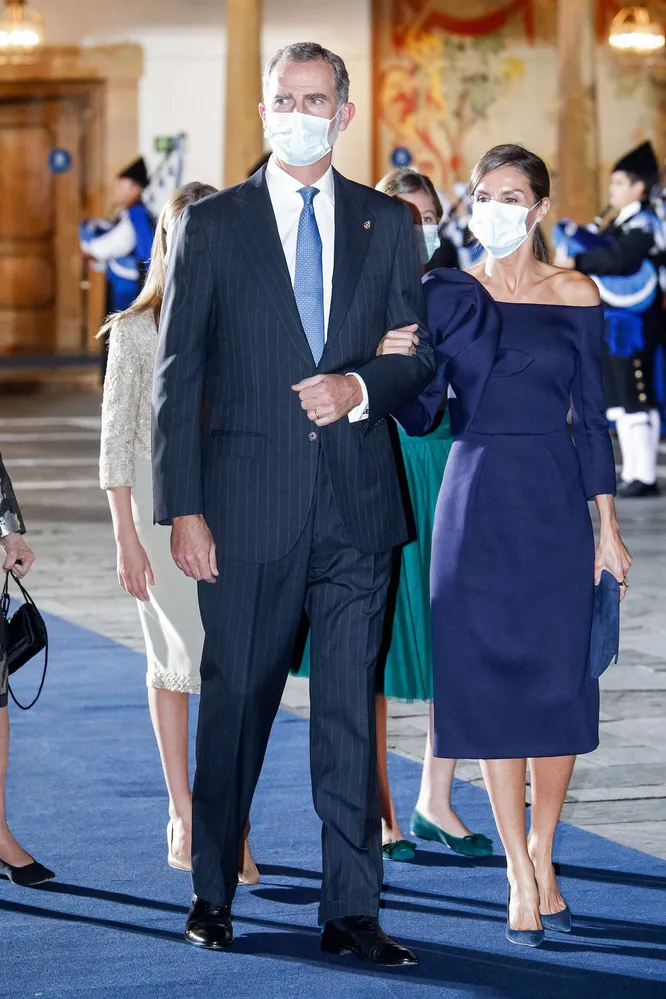 Королева Летиция и король Испании Фелипе появились на премии принцессы Астурийской, которая присуждается в Испании за достижения в искусстве, социальных науках, гуманитарной деятельности, международном сотрудничестве, спорте и научных и технических исследованиях. В пятницу торжественная церемония традиционно прошла в театре Кампоамор в Овьедо в офлайн-формате, однако гости обязаны были соблюдать режим социальной дистанции и носить маски.
