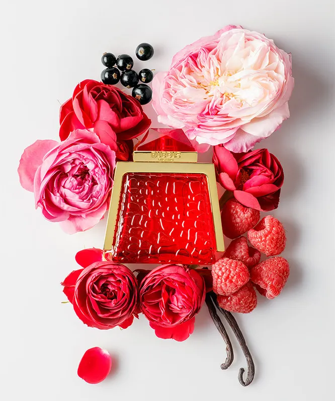 Теперь своим преданным клиенткам итальянский бренд Rubeus Milano может предложить не только эксклюзивные сумки и обувь из редких и ценных видов кожи, но и не менее эксклюзивный парфюм. Летний сад, наполненный ароматами цветущих роз, утонченное розовое шампанское, наполняющее бокал озорными пузырьками, сладкий и терпкий запах свежих ягод – вот настроение аромата, получившего название Rubeus Rouge. Разрабатывала композицию с нотами мандарина, черной смородины, абрикоса и грушевых цветов парфюмер Соня Констан, известная по работе с Christian Dior, Marc Jacobs, Tom Ford, By Kilian.