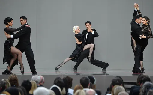 А самыми зрелищными музыкальными подарками для собравшихся стали выход на сцену Фаррелла Уильямса и экспрессивное танго в исполнении профессиональных танцовщиков.