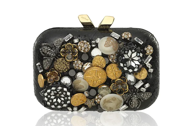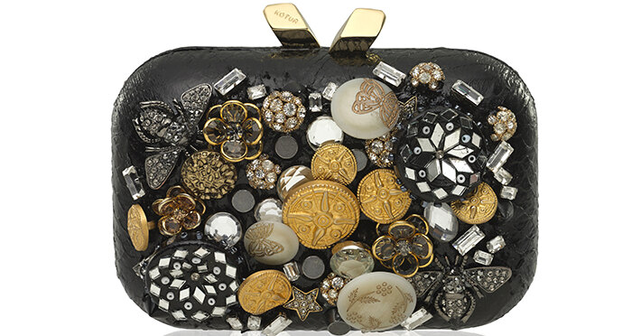 Бренд Kotur, в этом году празднующий десятилетие, прославился в первую очередь своими клатчами: именно им Фиона Котюр всегда уделяла особое внимание, привлекая к работе над дизайном моделей даже собственных родственников, – благо мама американки серьезно занимается fashion-иллюстрацией. Свою новую коллекцию Фиона решила сделать по-настоящему разнообразной: в ней нашлось место как относительно лаконичным, так и предельно ярким моделям, усыпанным сверкающими камнями и кристаллами. Что касается материалов, то здесь предпочтение отдано змеиной коже, бархату и плексигласу. Любопытно, кстати, что размер каждого клатча рассчитан таким образом, чтобы в него поместился телефон, блеск для губ и кредитные карты, – словом, ровно то, что необходимо во время вечернего выхода.
