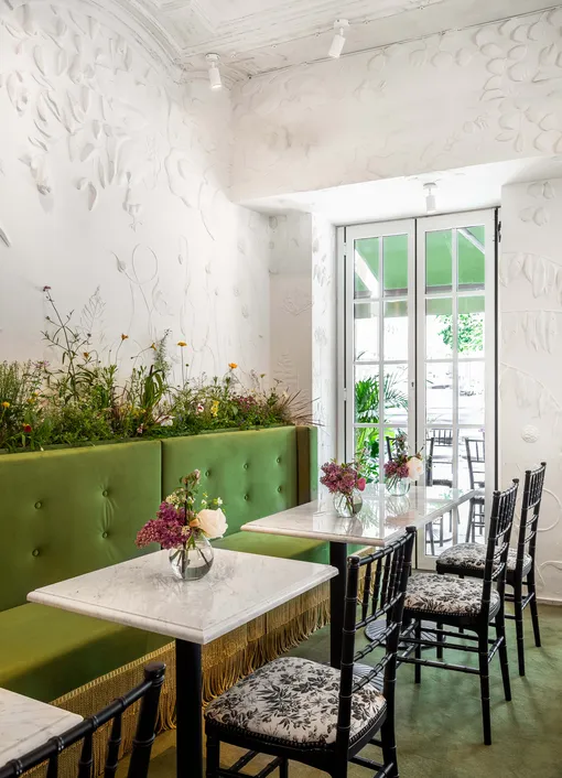 Gucci Shop&Bar также занимает пространство ресторана Margarita Bistro, где в течение месяца можно будет поужинать в атмосфере, бережно созданной Алессандро Микеле. Всю мебель, текстиль и посуду к открытию сделали специально по эскизам дизайнеров Gucci — и это еще один повод заглянуть в новое пространство. Возможно, вы присмотрите еще и интерьерные идеи для собственного дома. В ресторане можно попробовать блюда и авторские коктейли из специального меню Gucci — например, брускетту с камчатским крабом или тирамису с черной икрой. Но есть смысл поторопиться: уже через 10 дней все меню полностью поменяется.