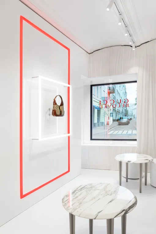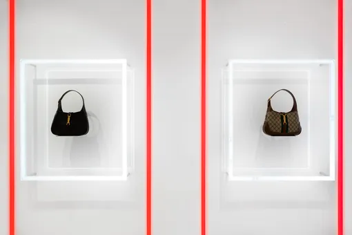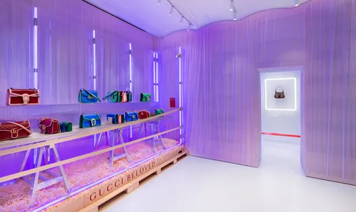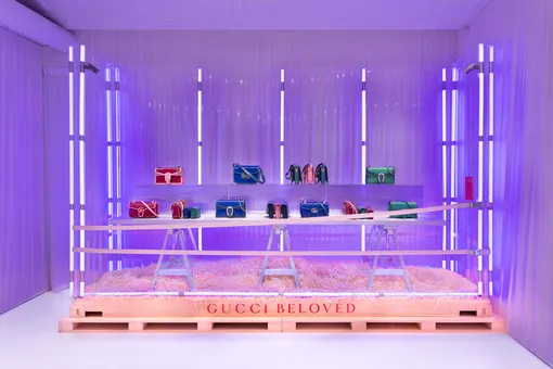 В поп-апе Gucci Pin представлены знаковые модели сумок Gucci в новых цветах. По замыслу Алессандро Микеле, креативного директора бренда, эти аксессуары — драгоценные камни. А временный бутик, в котором они представлены — это музей. Поэтому пространство очень напоминает запасник арт-галереи: белые стены, неоновые инсталляции, деревянные ящики с наполнителем, упаковочные ленты. В соседней комнате работает кофейня, где можно взять латте или капучино в стаканчике фирменного оттенка зеленого с логотипом Gucci — надо ли говорить, что он очень здорово смотрится на фото в Instagram (Социальная сеть признана экстремистской и запрещена на территории Российской Федерации)?