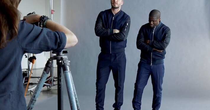 Как следует рассмотреть коллекцию Modern Essentials selected by David Beckham, полную необходимых мужчине базовых предметов гардероба, в этом видео не получится. Все внимание на себя забирают ее главный герой – Дэвид Бекхэм, а также его напарник – Кевин Харт. В рамках новой кампании H&M, Харт играет актера, репетирующего роль Бекхэма по системе Станиславского. Оцените их чувство юмора по достоинству.