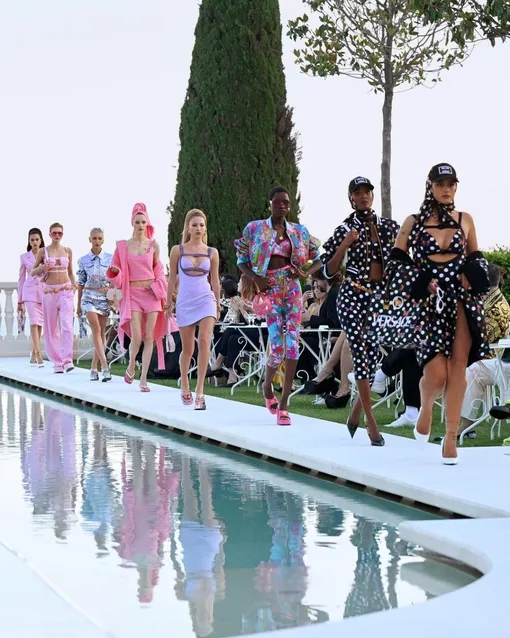 «Я обожаю лето, и для меня эта коллекция воплощает лучшее, что есть в этом времени года. Это идеальная летняя коллекция, в которой есть все — от бикини с забавным принтом, в котором так приятно нежиться у бассейна, до стильных вечерних платьев для танцевальных вечеринок жарким летом. Эта коллекция моментально навевает мысли об отпуске у моря. Дуа любит моду, я люблю музыку — мы идеальный дуэт! Работая над этой коллекцией, мы чувствовали себя, как в отпуске, и хотим, чтобы наша одежда создавала именно такое настроение», — прокомментировала этот союз Донателла Версаче. Судя по всему, они с Дуа поняли друг друга с полуслова. Отсюда — повторяющийся мотив порхающей бабочки, дерзкие мини в духе Y2K, много блесток и металлика и, конечно, розовый (барбикор все еще никто не отменял, тем более что певица снялась в фильме Греты Гервиг про самую знаменитую куклу мира).