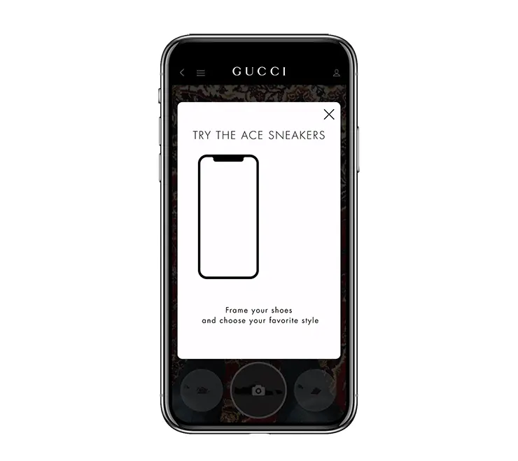 Gucci продолжают идти в ногу со временем: на этот раз бренд порадовал поклонников новым инновационным приложением для смартфонов. Его главная идея — дать возможность покупателям виртуально «примерять» кроссовки из линейки бренда Ace. Для этого нужно всего лишь выбрать понравившуюся пару кроссовок на экране, направить камеру своего мобильного устройства на ноги и виртуально «примерить» выбранную пару.