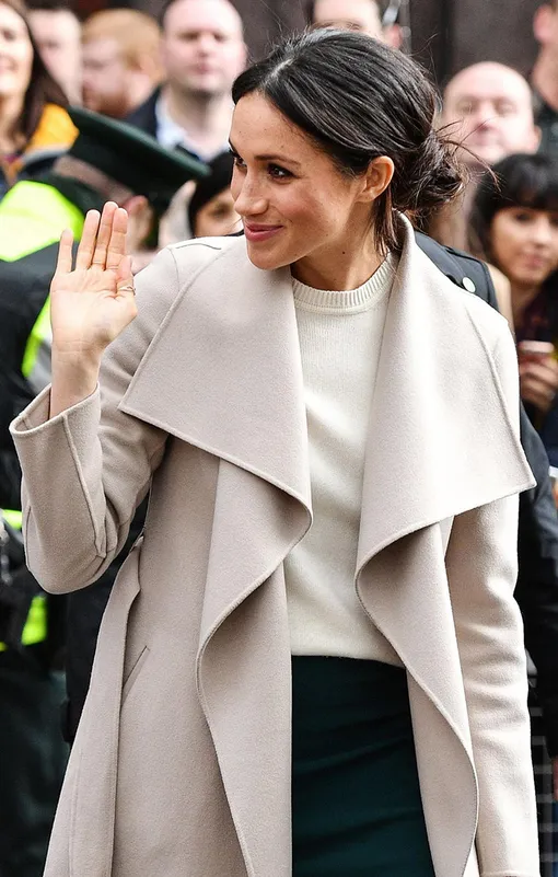 Низкий пучок – самая универсальная прическа. Герцогиня Сассекская любит эту простую укладку за то, что естественная небрежность только придает ей шарма, и, в отличие от сложносочиненных высоких конструкций, не опускается в течение дня. Кстати, вечером пучок можно распустить и прийти на вечеринку с готовыми локонами.