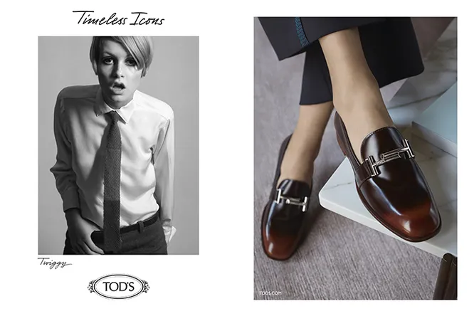 Дизайнеры нередко ищут вдохновение в образах прошлого, но в Tod’s решили пойти дальше: «лицами» новой осенне-зимней коллекции стали ретро-иконы — Твигги и Джейн Шримптон. Выбор главных героинь «свингующих» 1960-х для рекламной кампании 2016 года выглядит вполне органично в контексте эстетики Tod’s, лишний раз доказывая, стиль итальянской марки – вне времени. По имиджам новой коллекции, которую совсем скоро мы увидим в магазинах, можно понять, что все эти вещи легко вписались бы в гардероб знаменитых англичанок. Лоферы темного шоколадного оттенка из этой коллекции вполне могла бы надеть Твигги, а элегантная кожаная сумка цвета слоновой кости отлично сочеталась бы с пальто и платьями А-силуэта, которые регулярно носила Джейн Шримптон. Безусловно, в каждом из этих узнаваемых образов креативный директор марки Диего Делла Валле видит не только музу своей коллекции, но символ цикличности и преемственности моды.