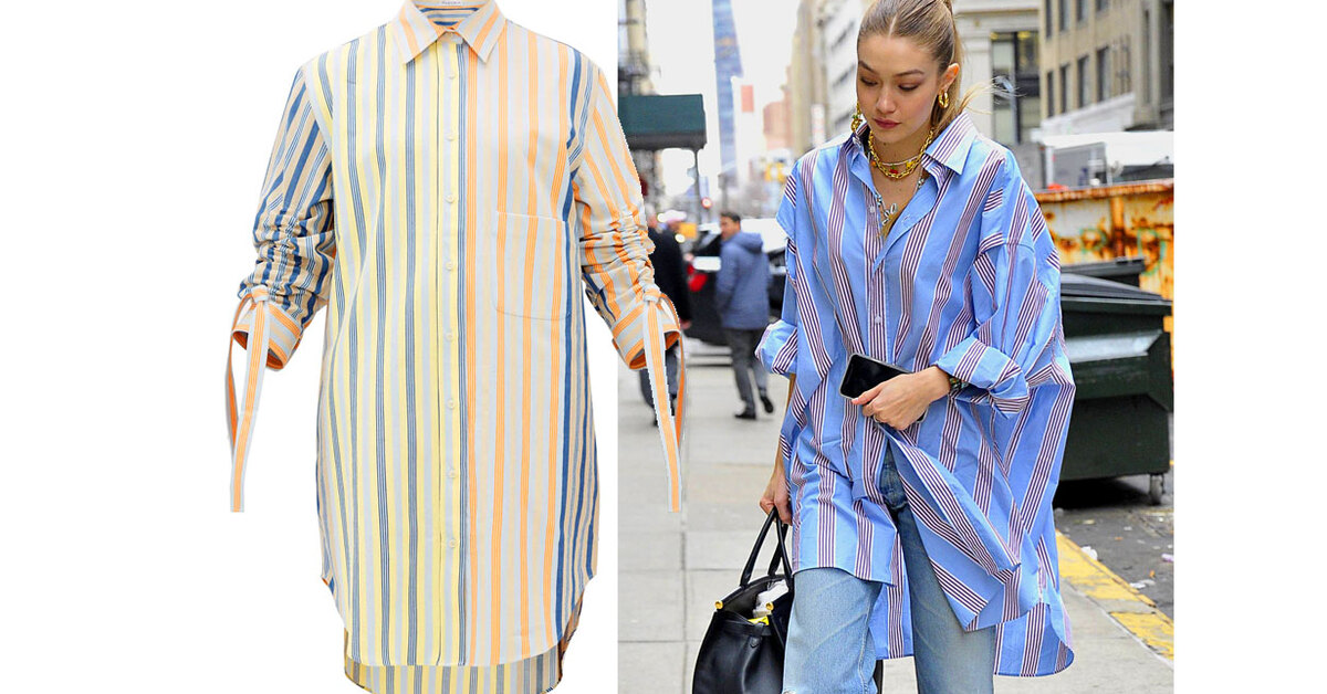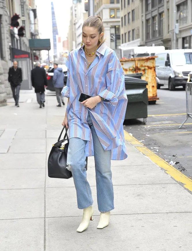 Признанная икона стиля Джиджи Хадид всегда умело сочетает вещи, и некоторым стилистическим приемам нам стоит у нее поучиться. На этот раз папарацци поймали старшую Хадид спешащей на встречу в полосатом платье-рубашке бренда Maison Margiela. Этот элемент гардероба просто незаменим в сезоне весна-лето — 2020. Выбирайте платья-рубашки разных цветов, длины и фасона и сочетайте с джинсами и брюками, которые можно подобрать в тон к верху или, наоборот, составить контрастный образ. Летом такое платье тоже не будет лежать без дела: как только потеплеет, его можно будет носить уже без брюк, сочетая с кедами или босоножками. В нашей подборке вы найдете 10 самых стильных платьев-рубашек, которые помогут повторить образ Джиджи. И не забудьте взять вещь на пару размеров больше, как это сделала модель.