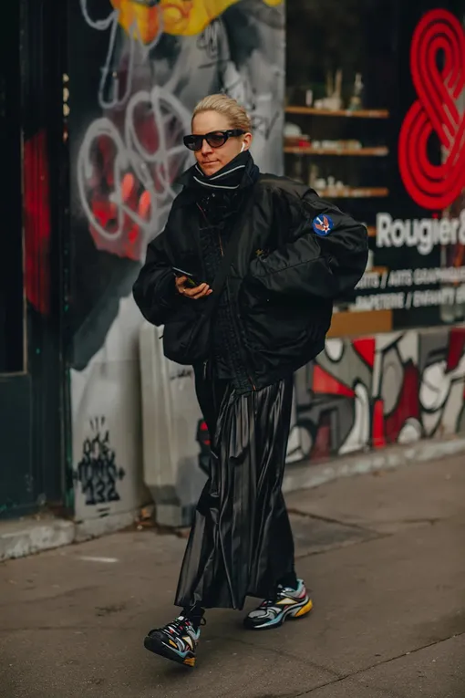Пускай кроссовки — не самая очевидная обувь, чтобы комбинировать с платьями и юбками, они станут отличной альтернативой слингбэкам на шпильке или туфлям Мэри-Джейн. Поскольку ugly sneakers безнадежно вышли из моды, выбор советуем сделать в пользу моделей минималистичного дизайна. Они выглядят куда актуальнее, да и сочетать их можно с юбками всех фасонов.