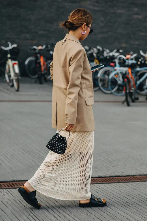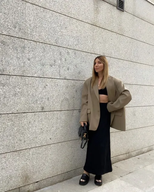 Трикотажные юбки-чулки из года в год возвращаются на подиумы и в магазины, и этот осенне-зимний сезон не стал исключением. Узкая миди или макси — бессметная база, которая станет не только основой для множества стильных образов, но и выгодной инвестицией в гардероб, ведь еще очень долго не выйдет из моды. Лучшая пара для такой юбки — свободный широкоплечий оверсайз-жакет мужского кроя. Под него достаточно добавить простой трикотажный топ и эффектное комбо готово.