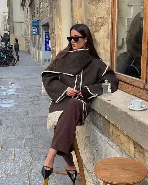 Еще один оттенок, который уверенно держится в списке актуальных уже не первый сезон. Шоколадный — куда более изысканная альтернатива черному, и француженки его просто обожают. Их нередко можно увидеть в тотал-луках цвета горького шоколада, однако они нередко сочетают его и с другими цветами: среди лучших комбинаций — белый, кремовый и голубой.