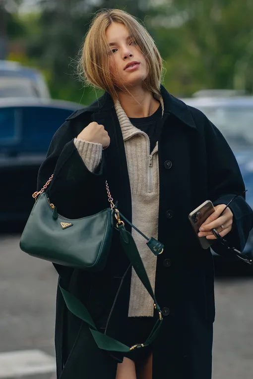 Если оттенки вроде Bottega Green или лаймового приходят на модную арену и покидают ее, то глубокий зеленый, напоминающий по по оттенку то ли хвою, то ли малахит, не утратит своей актуальности никогда. Несмотря на насыщенность цвета, оттенок остается довольно универсальным, так что сумку будет легко вписать в любой лук.