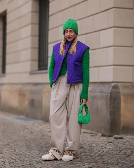 Стеганые жилеты, наравне с куртками и пальто, давно стали не только способом согреться в холодную погоду, но и одним из любимых предметов гардероба героинь стристайла и звездных модниц. Неудивительно, ведь этот предмет гардероба можно с легкостью вписать и в классический, и в более спортивный образ. Отличным решением на каждый день станет комбо из жилета, теплой водолазки и широких брюк — это удобно, универсально и очень стильно.