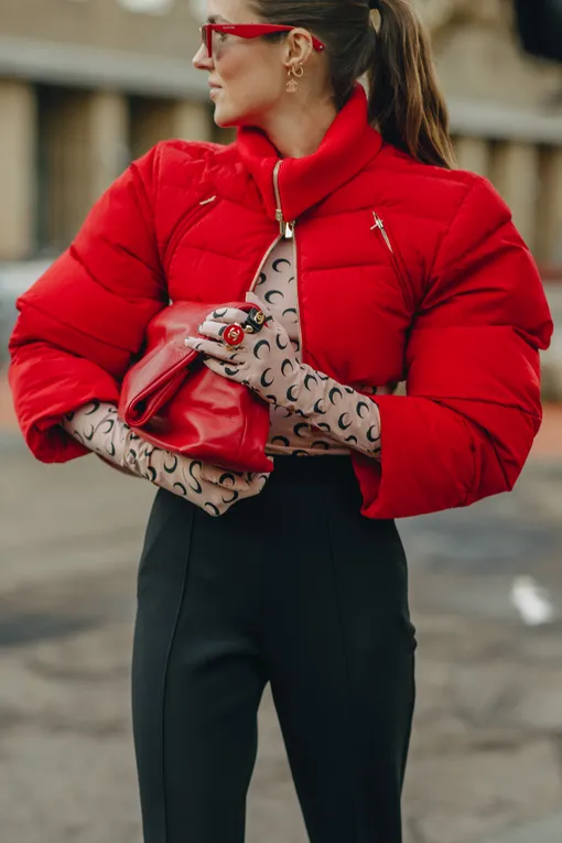 Еще один насыщенный цвет, который раскрасит вашу зиму — красный. Актуальны любые оттенки — от кирпичного до алого. Причем лучший способ стилизации для красного — это тотал-лук. Не верите? Взгляните на образы из актуальных коллекций Versace, Blumarine, Alexander McQueen и Alaïa.