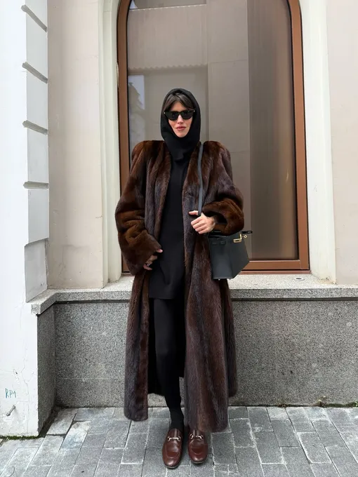 Если вдруг у вас в шкафу есть коричневая эко-шуба — самое время доказать на ней, что уравнение коричневый + черный может иметь общий знаменатель. Чтобы выполнить эту задачу, попробуйте дополнить комплект уютным худи с капюшоном и вместительной сумкой-тоутом. В качестве бонуса можно добавить третий предмет одежды в черном цвете — леггинсы. А вот обувь лучше всего оставить в коричневой расцветке. На эту роль отлично подойдут утилитарные сапоги, высокие ботфорты или лоферы с фурнитурой.