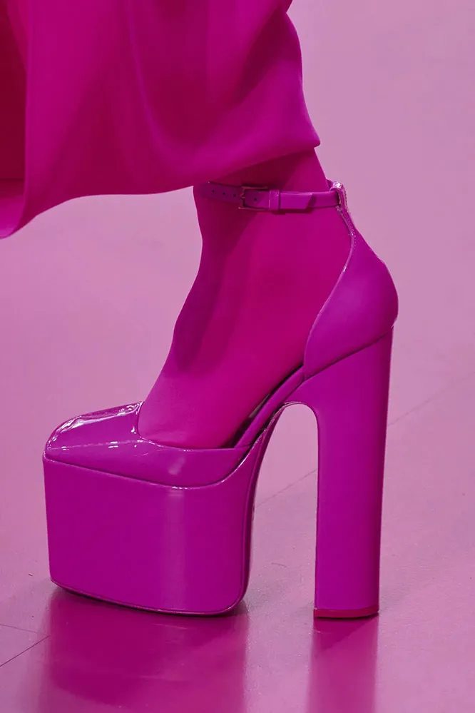 Гипертрофированные объем и пропорции — излюбленное дизайнерами поле для экспериментов уже не один сезон. Особенно явно это наблюдается на примере обувных трендов. Волну популярности массивной платформы запустили «туфли Bratz» из коллекции Versace осень-зима 2021-2022. Летом они превратились в босоножки неоновых оттенков, а следом другие версии «кукольной» обуви показали Lanvin, Fendi и — в своем собственном видении — Saint Laurent и Givenchy. Пожалуй, самая интересная интерпретация тренда — у Мэттью Уильямса. Его кожаные сапоги-чулки и клоги на высокой платформе гармонично вписались в общую готическую эстетику весенне-летней коллекции. Если вы не склонны тратить заоблачные суммы на тенденции, в жизнеспособности которых не уверены, спешим успокоить: судя по осенне-зимним показам, массивные платформы с нами всерьез и надолго.