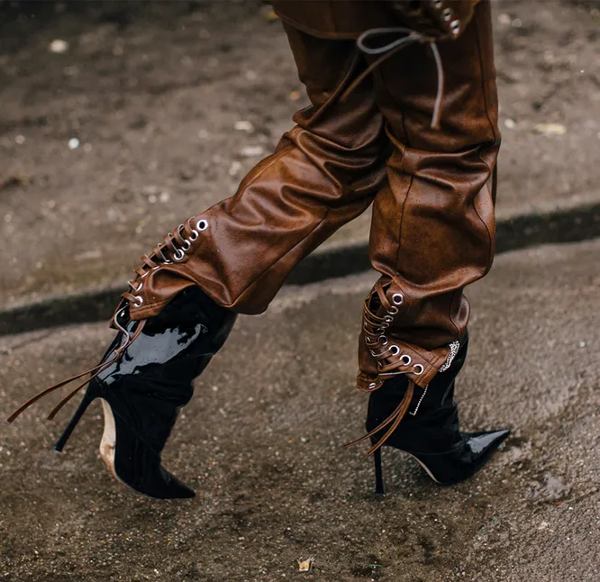 Как носить брюки из цветной кожи: 7 примеров