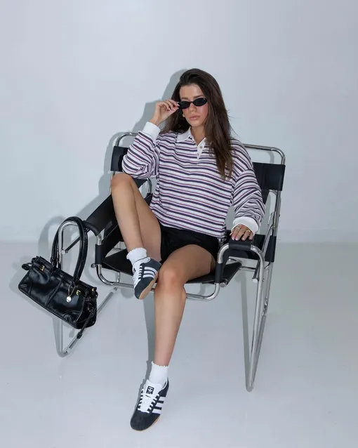 Особенно популярны белые версии с цветными полосками, а также в черном цвете с белыми деталями. Для тех, кто не боится ярких тонов, подойдут желтые вариации с черными полосками или розовые. Как их стилизовать? Если вы не любите эксперименты, то просто носите кроссовки с такой же расслабленной одеждой. А если вы к ним как раз готовы, то играйте на контрастах и миксуйте их с платьями или элегантными миди-юбками. Возвращение к архивным формам — это не только модный ход, но и стратегия, проверенная временем. Успех моделей Samba, Gazelle, SL 72, Taekwondo и теперь Tokyo — это подтверждает. Эта модель не просто отвечает трендам, она задает их.