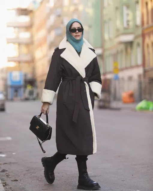 Утепленное пальто — отличная альтернатива пуховику для тех, кто хочет выглядеть элегантно даже в минусовую температуру. Носить такое пальто можно поверх практически любой одежды. Наиболее комфортным выбором станет базовый свитер и прямые брюки из шерсти или джинсы. Завершить образ можно при помощи ботинок челси, а дополнительно утеплиться — поможет вязаный капор.