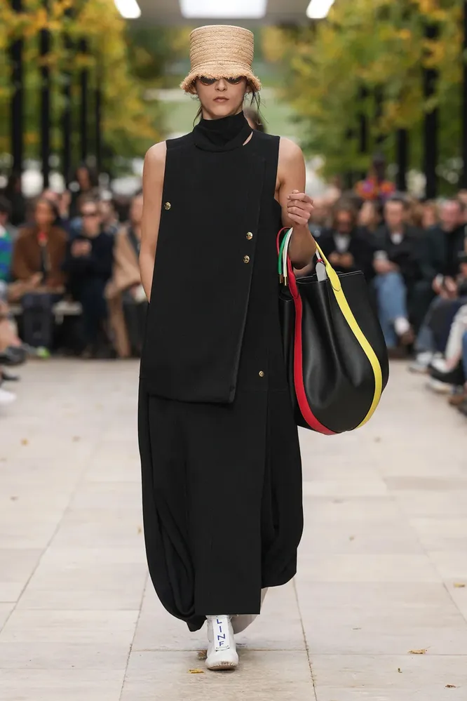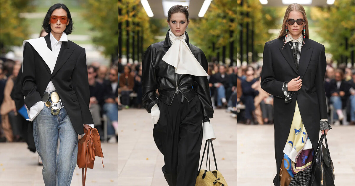 Сeline нового креативного директора Майкла Райдера уже второй раз становится настоящим пособием по стилю. И если в дебютной коллекции в роли главных героев образов выступили шелковые платки, то на шоу весна-лето 2026 эту нишу заняли простые черные брюки, которые стилизовались с самыми разными «верхами» и аксессуарами. Также стоит отметить и нетривиальную палитру — она вполне сдержанная, но не скучная. Нейтральные оттенки выгодно сочетаются с такими виральными пастельно-желтым, фиолетовым, ярко-красным и насыщенным зеленым. Мы выбрали 6 лучших комплектов с показа, которые предлагаем повторить, не дожидаясь прихода весны.
