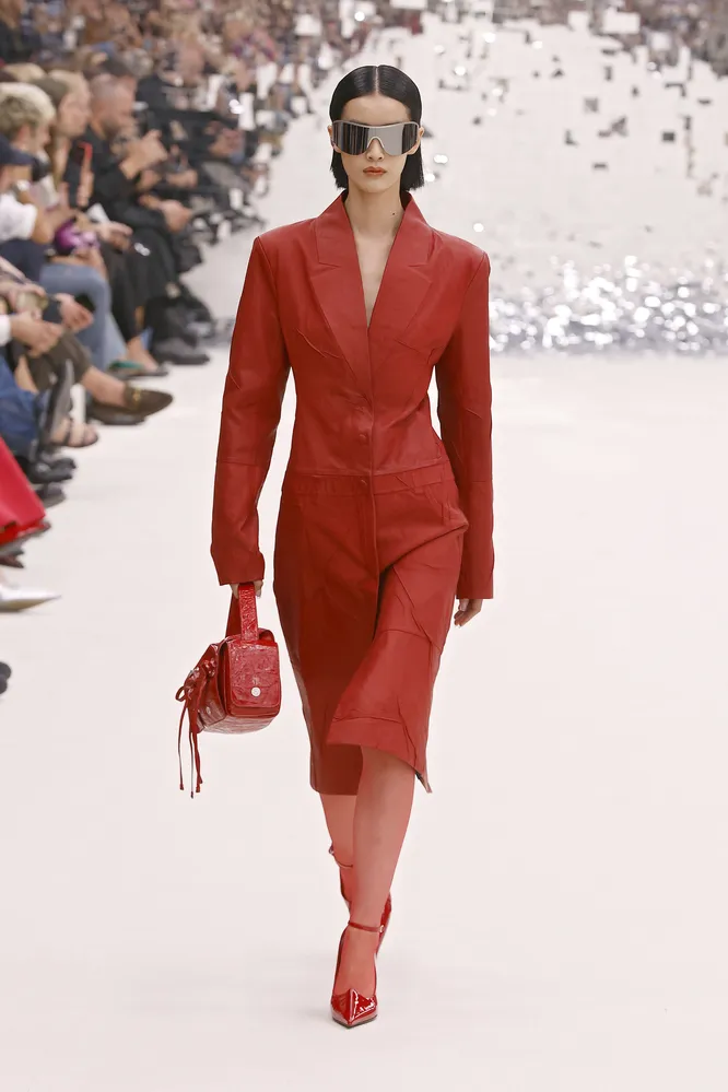Красный не собирается сдавать свои позиции в 2024 году. А самый простой и эффектный способ носить его в этом сезоне — по-прежнему в тотал-луке. Это может быть строгий брючный костюм, который станет отличной альтернативой классическому черному, элегантное платье макси или просто длинное пальто, как на шоу Acne Studios. Но если монохромный образ вам не по вкусу, просто добавляйте красные вещи в повседневные луки. Попробуйте начать с малого: колготок, сумки или кожаных перчаток.