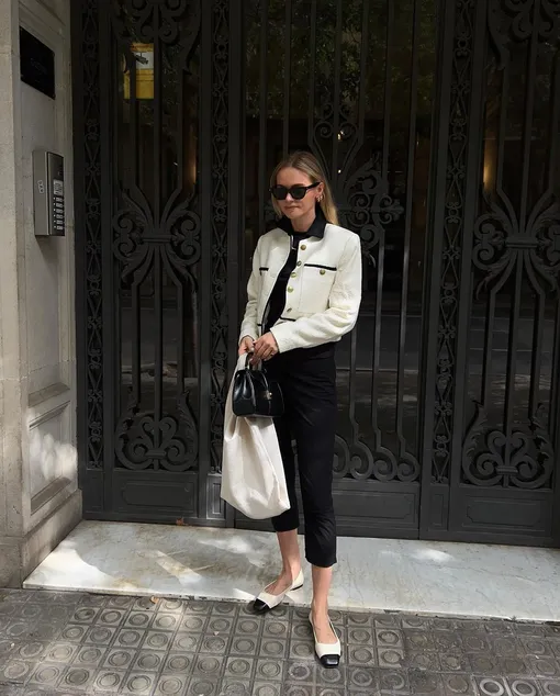 Да, балетки неожиданная вещь на модной арене в 2022 году, однако звание «камбэк десятилетия» все же достается капри. Эти укороченные брюки из нулевых снова в моде, и ранняя осень — лучшее время, чтобы их носить. Чтобы создать образ в лучших традициях стиля парижанок, сочетайте их с балетками с контрастным мысом и укороченным твидовым жакетом.