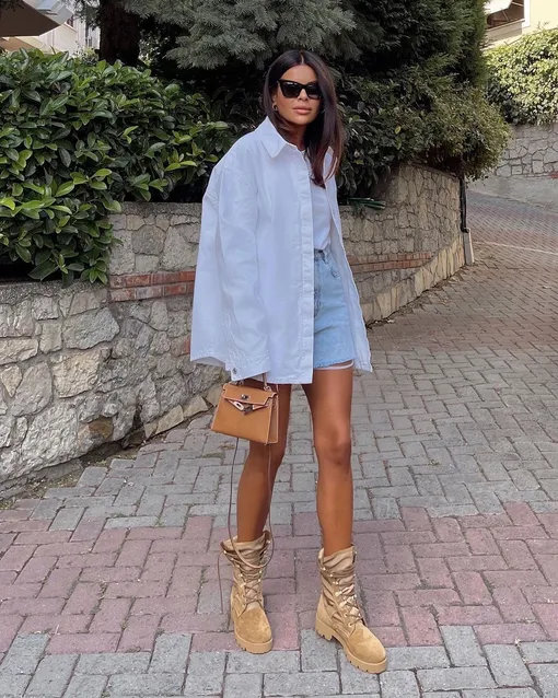 Летом без шортов обойтись невозможно: это самая комфортная одежда для жаркой погоды. Однако, надевая шорты, вы всегда рискуете выглядеть слишком «по-пляжному». Именно поэтому на помощь здесь придет объемная рубашка. Ее можно надеть как самостоятельно, так и в расстегнутом виде поверх топа. Такой объемный верх уравновесит шорты, и образ будет выглядеть гармонично и уместно. В идеале шорты не должны быть слишком короткими: если их не видно из-под рубашки, может создаться впечатление, что на вас их вовсе нет, а такой вариант уместен только для прогулок по пляжу.