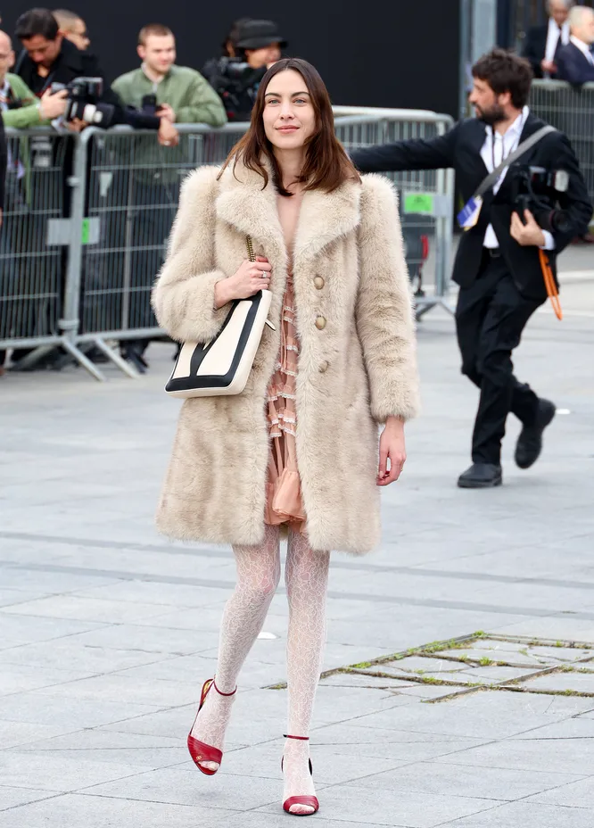 Еще несколько лет назад колготки в принципе считались спорным элементом гардероба. Дизайнеры и стилисты предпочитали обходить их стороной или прятать. Особенно белые: они ассоциировались с детскими нарядами, школьной формой или театральными костюмами. В моде, где господствовал минимализм, им просто не было места — слишком наивно. Но как часто бывает, то, что считалось табу, легко может стать тенденцией. Все началось с подиумов. На Неделях моды белые колготки появились сразу у нескольких брендов, среди которых Acne Studios, Blumarine, Coperni и Valentino. Кто-то вдохновился эстетикой balletcore, а кто-то решил, что это выглядит крайне свежо в осенне-зимних шоу. А дальше эстафету подхватили звезды и фэшн-инфлюенсеры. Сегодня это совсем не про «девочковость», а про силу контраста и осознанную игру со стилем. Почему это актуально? Все просто — мы устали от мрачных оттенков. После долгих сезонов серого и черного захотелось света и визуальной чистоты. Белые колготки буквально «осветляют» образ, делают его визуально легче, свежее, а иногда и романтичнее. Они как мягкий фильтр, через который все привычные вещи смотрятся по-новому. Черное платье с белыми колготками уже не выглядит строгим, а серый офисный костюм с юбкой приобретает женственный характер. Свитер в комбинации с мини-юбкой — отсылка к моде 60-х и аутфитам в духе Твигги.