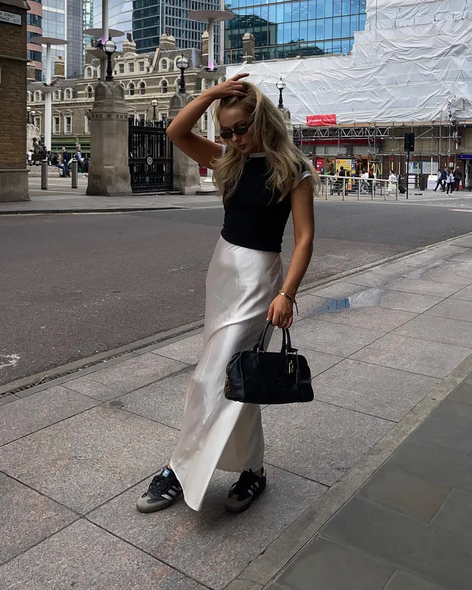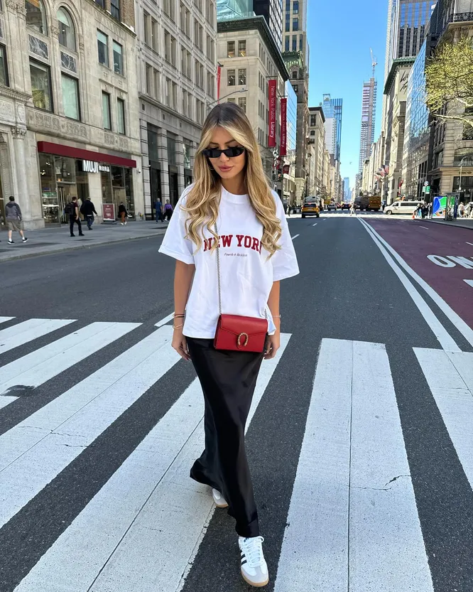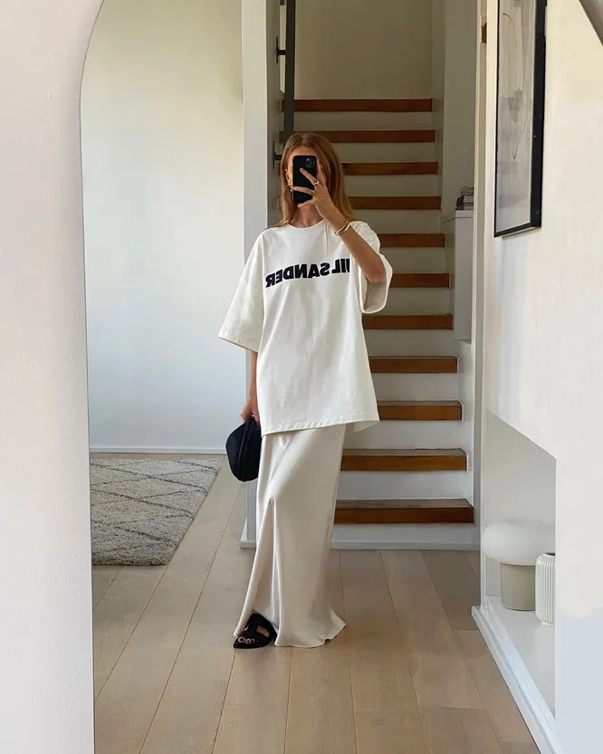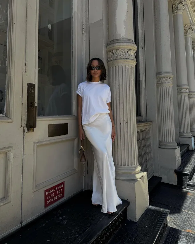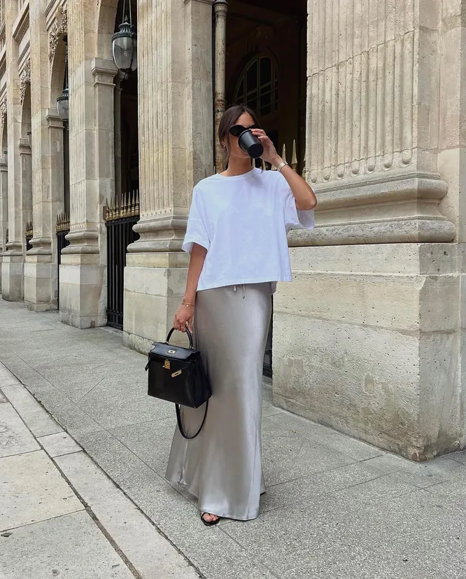 Шелковую юбку модницы давно носят не только для особых случаев, но и на каждый день. С ней любой образ становится элегантнее. Особенно это актуально летом, когда каждый теплый день воспринимается как праздник. А комбинируют шелковую юбку фэшн-инфлюенсеры с самой простой вещью, которая есть гардеробе каждой — с футболкой. Правда, при составлении такого образа важно учесть несколько нюансов. Рассказываем, как правильно сочетать футболку с шелковой юбкой летом-2025.