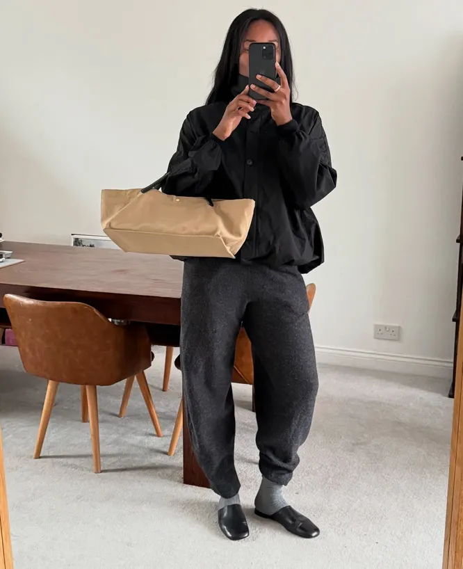 Почему именно серые носки сыграли роль прекрасного аналога белых этой весной? Начнем с их универсальности. Этот цвет — один из главных нейтральных вариантов, который точно впишется в любой повседневный образ, будь то простое и лаконичное комбо из бежевого тренча, белого лонгслива и классических черных брюк-палаццо, или более элегантный дуэт из удлиненной рубашки свободного кроя и шелковой юбки с кружевом на подоле. Во-вторых, они куда практичнее белых, кремовых и других более светлых вариаций. Даже если вы выходите из дома в теплую сухую погоду, следы городской пыли неизбежно останутся на обуви и носках. И в случае с серыми вариациями это будет куда менее заметно.