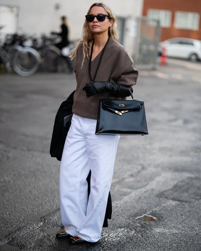 Сочетайте сумки с минималистичными платьями, классическими брюками, джинсами и блузками. Для создания более дерзкого образа можно добавить в аутфит кожаную куртку или брутальные ботинки. А если хотите составить стильный лук в стиле нулевых, сочетайте скинни со строгим оверсайз-жакетом и туфлями-лодочками на kitten heel. Или же попробуйте надеть джинсы-клеш, короткий топ и массивные кроссовки на платформе. Другой вариант — элегантный лук в духе французского шика. Для этого сочетайте сумку с лаконичным тренчем, балетками и крупными солнцезащитными очками. Вау-эффект гарантирован. Еще больше модных луков в стиле нулевых ищите в галерее ниже.