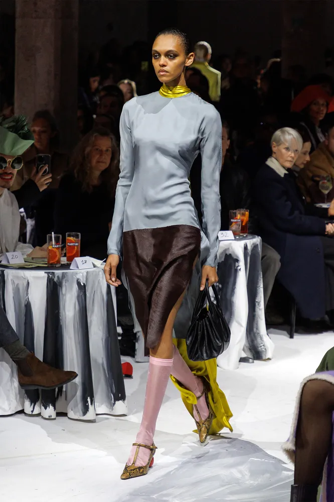 В новом сезоне в тренде гольфы буквально всех мастей. Не важно, выберете ли вы удлиненные модели из кашемира в пастельно-розовых оттенках как у Miu Miu и Marni, или отдадите предпочтение классическим черным сетчатым вариациям как у Dolce&Gabbana, Christian Dior и Coperni — они будут выглядеть одинаково стильно. Если хочется приобрести вариацию на каждый день, которую можно будет надевать даже на работу, рекомендуем делать выбор в пользу гольфов в нейтральных тонах — сером, бежевом, коричневом или молочном. А в случае, если вы ищете акцентную модель, которая сразу же превратит простой образ в модное заявление — то лучше присмотреться к пастельной палитре. Среди самых удачных вариантов — пудровый, нежно-голубой, банановый и фисташковый.