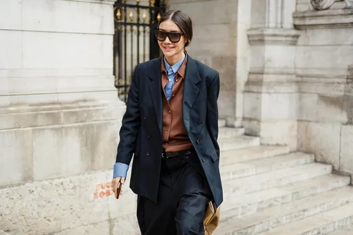 Тем более что Леандра Медин Коэн своим примером доказывает: это возможно. Для этого нужно взять две рубашки из вашего гардероба — желательно контрастных оттенков. Одну надеть поверх второй. Дальше — самое интересное. Для эффекта многослойности придется расстегнуть несколько верхних пуговиц и достать воротничок нижней рубашки так, чтобы он выглядывал. Далее то же самое нужно проделать с манжетами. Для этого чуть закатываем рукава верхней рубашки и достаем манжеты нижней. Добавьте цепочку или колье, чтобы акцентировать необычный воротник — и готово. Вот так просто можно подарить новую жизнь двум старым сорочкам, не потратив при этом ни копейки.