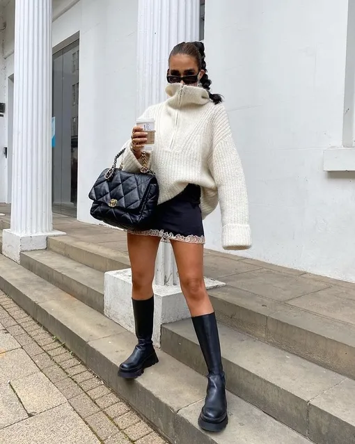 Пожалуй, первая покупка, о которой мы задумываемся с наступлением сентябрьских холодов (и еще одна причина, за которую мы любим осеннюю моду) — это уютный теплый свитер. В этом сезоне особенно актуальными будут популярные в 80-е и 90-е модели с воротником на молнии. Также известный как «лыжный» свитер, когда-то он считался предметом исключительно спортивного гардероба, а сегодня является необходимой осенней базой и то и дело мелькает в образах звезд стритстайла и в коллекциях модных Домов. Многофункциональный высокий воротник на молнии будет закрывать вашу шею от холода, а если станет жарко — его легко можно расстегнуть. Носить такой свитер с открытым воротником можно как на голое тело, надев под него ожерелья из жемчуга или модную цепь, так и поверх футболки или водолазки.