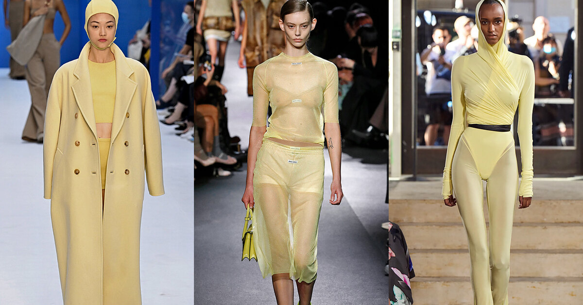 Как выяснилось благодаря весенне-летним показам, он одинаково здорово смотрится и сам по себе, в формате тотал-лука, и в сочетании с самыми разными цветами. Причем как с приглушенными, так и с яркими, и даже с темными. Так что выбор полностью за вами. К слову, он также выдерживает и простые силуэты, и сложносочиненные конструкции вроде объемной плиссированной розы на плече рубашки Dries Van Noten. Отдельно отметим то, как здорово в этом цвете выглядят невесомые летящие ткани вроде шелка и шифона (например, полупрозрачный сет из юбки и топа Miu Miu). И даже верхняя одежда цвета сливочного масла способна потеснить классическую бежевую. Не верите? Взгляните на пальто из актуальной коллекции Max Mara.