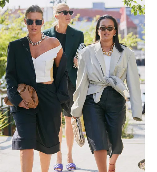 Если массивные металлические цепи все еще ассоциируются у вас исключительно с атрибутикой хип-хоп-индустрии, то пора пересмотреть взгляды. А помогут вам в этом снимки самых модных девушек — Instagram-блогеров и звезд стритстайла. Грубоватые украшения, отсылающие к рэп-эстетике, в последнее время особенно часто фигурируют на их снимках в сочетании с самыми разными вещами: от маек-«алкоголичек» до строгих рубашек, от нежных шелковых блузок до базовых рифленых водолазок. И, конечно, куда без «мужских» жакетов - самый трендовый предмет гардероба особенно гармонично смотрится в паре с увесистым маскулинным ожерельем.