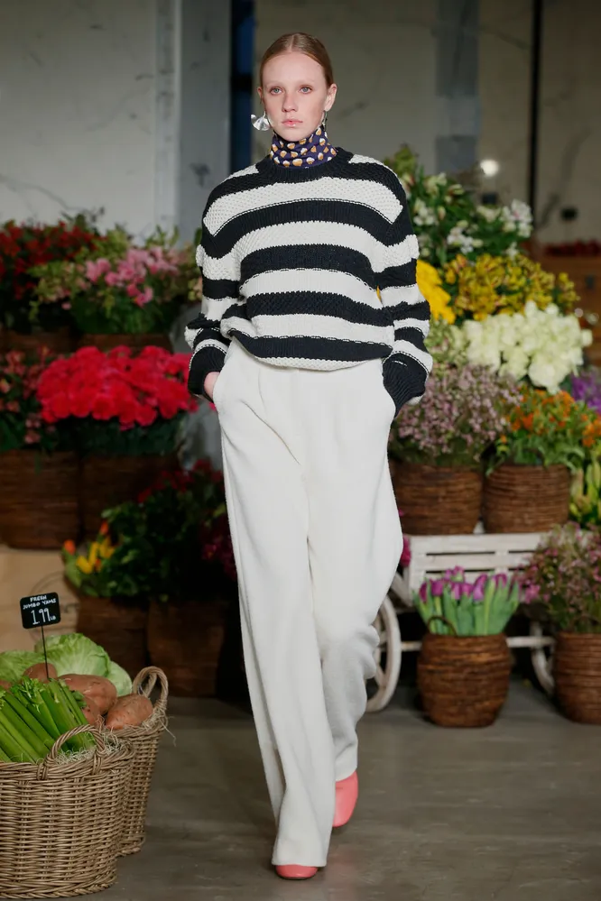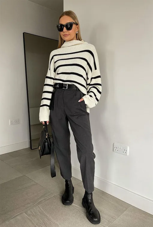 Полосатый свитер по праву считается классикой гардероба – а в дуэте с монотонными брюками он с легкостью становится униформой на каждый день. Будем честны: базовый джемпер с такими же брюками едва ли можно назвать самым модным комбо сезона. Однако фэшиониста уверены: союз «морского» свитера и базовых брюк может выглядеть ультрастильно. Главная тонкость в этом вопросе – умелое сочетание.