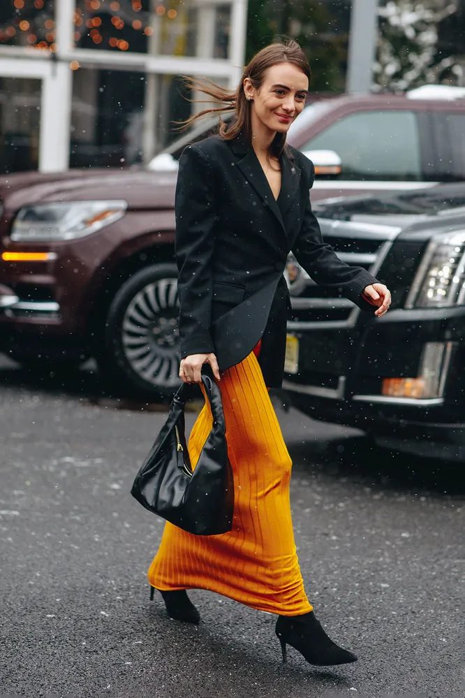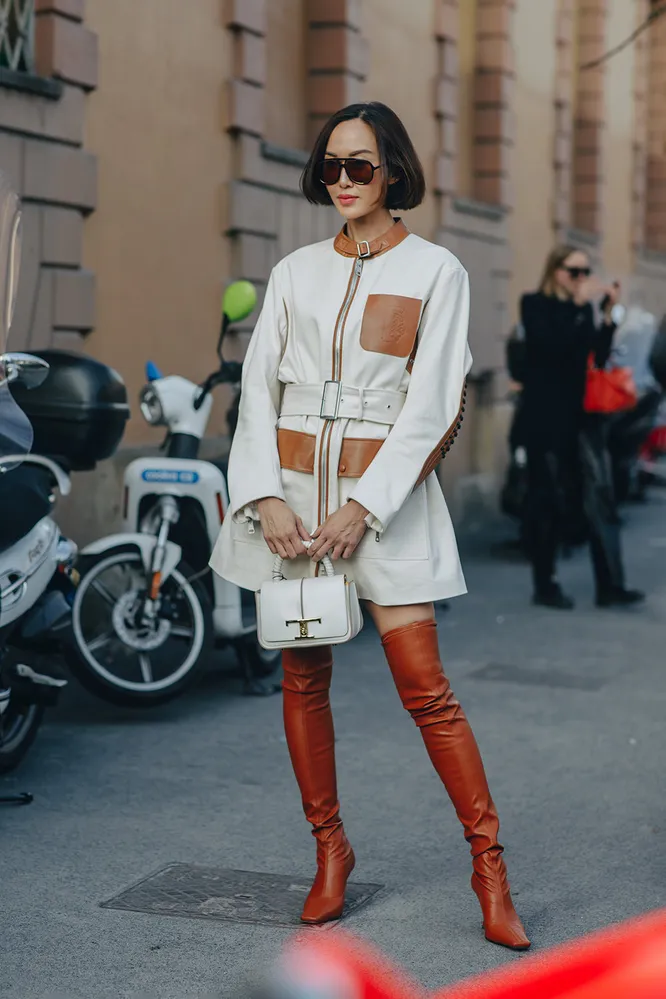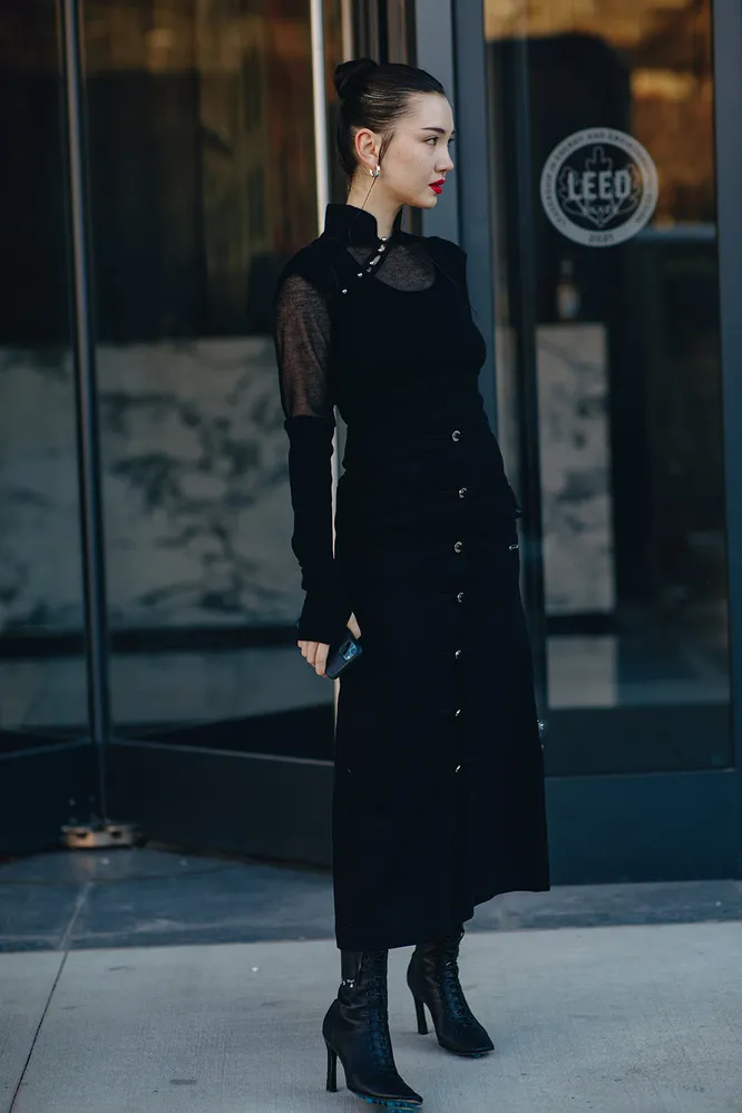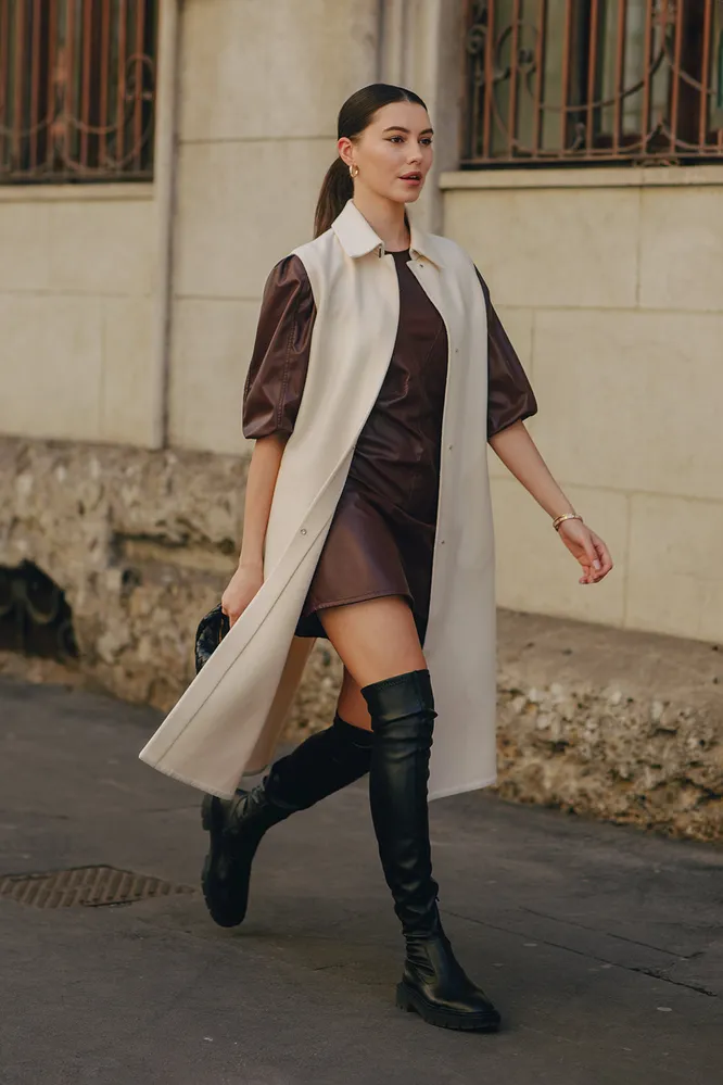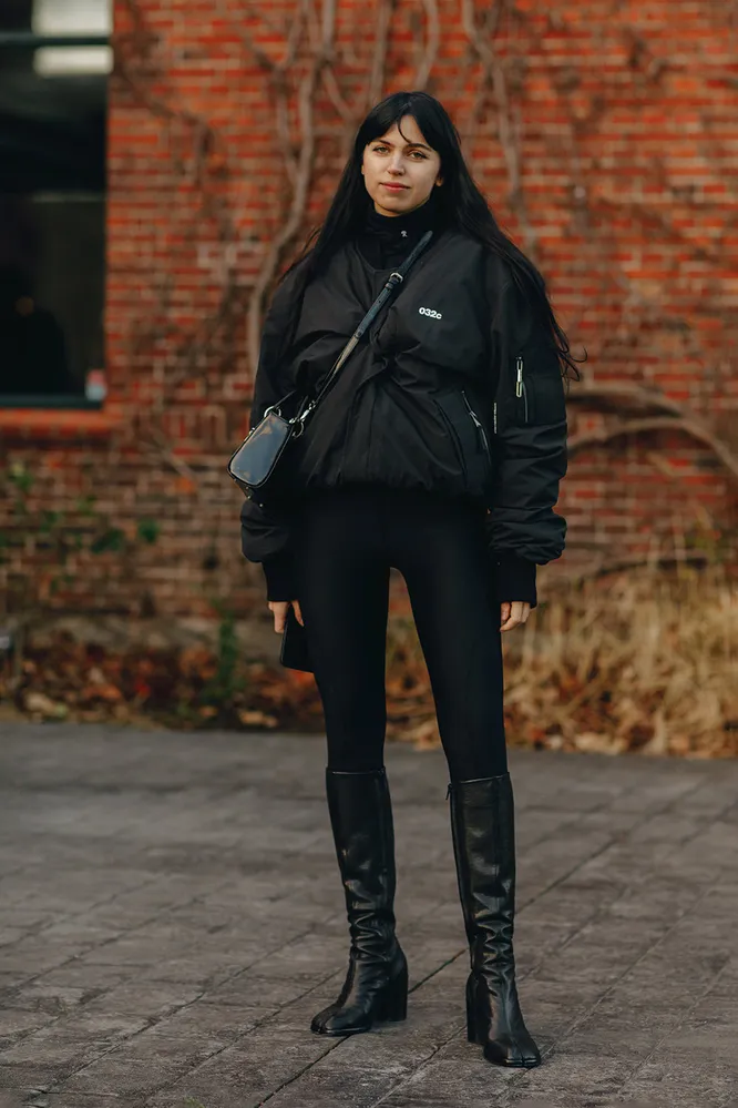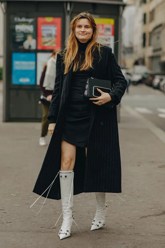 Выбрать такие сапоги предельно просто: они могут быть из кожи или замши, на шпильке, устойчивом каблуке или вовсе на плоской подошве. Важен лишь крой — они должны максимально облегать ногу, а в частности — лодыжку. Тогда силуэт получится утонченным, а ноги будут выглядеть стройнее. Сочетать такие сапоги лучше всего с платьями и юбками. При этом они могут быть практически любого фасона. Если решите комбинировать сапоги с мини, обязательно надевайте колготки в тон. В противном случае расстояние между сапогами и нижним краем подола будет «резать» рост. Если мини вам не по вкусу, смело сочетайте сапоги с платьями и юбками миди. Они могут быть прямого кроя, А-силуэта или, подобно сапогам, облегать фигуру. В этом случае не забывайте об объемном верхе (это может быть широкоплечий пиджак или объемный свитер), чтобы образ оставался гармоничным. Что касается цвета — самым оптимальным выбором, безусловно, станет черный. Такие сапоги не только подойдут к любой одежде, но и не выйдут из моды в ближайшие несколько лет. Если черный вам не по вкусу, выбирайте сапоги того оттенка, который подойдет к большей части вашего гардероба. Все же эта покупка должна быть универсальной. Все еще сомневаетесь, что вам нужны облегающие сапоги? Чтобы развеять все сомнения, мы собрали самые стильные способы носить эту модель сапог, которые одобрили звезды стритстайла.